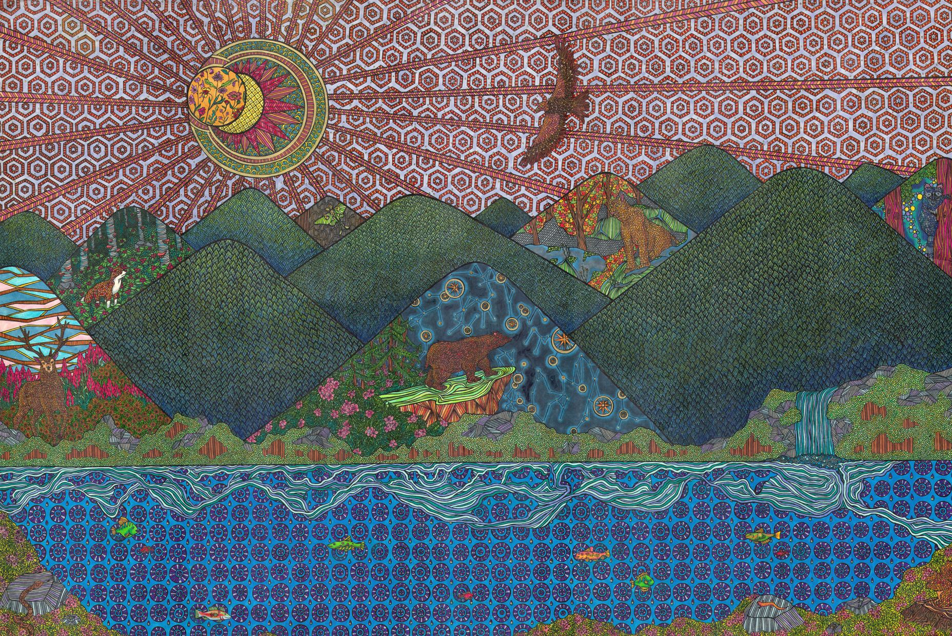 ‘Appalachia’ is an ode to Western North Carolina. This piece is full of flora and fauna from the area!