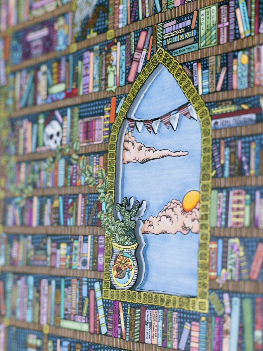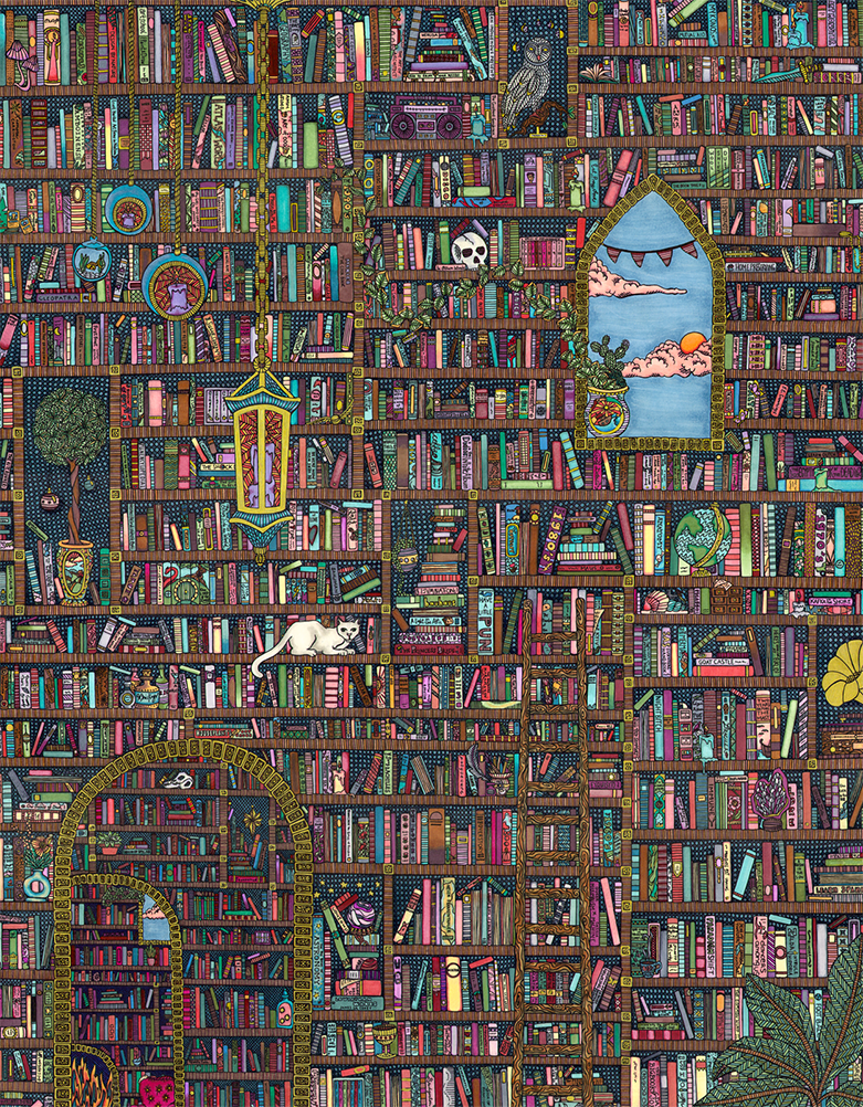 ‘The Library’ is a work of art that took me roughly 14 months to create. Originally done in pen and ink on acid-free paper, this fun piece can be yours as a print!