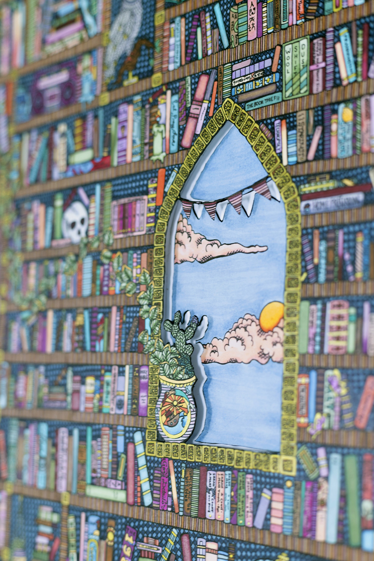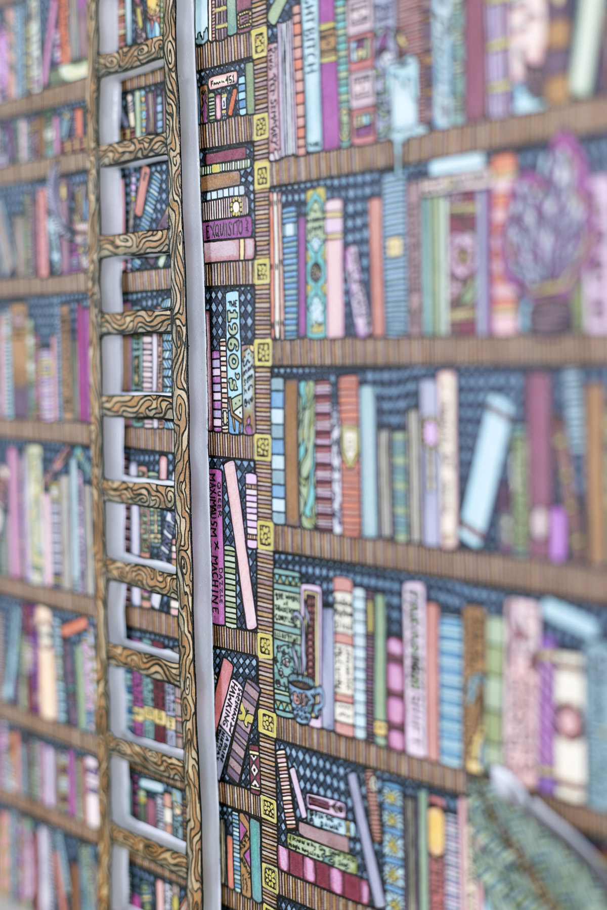 ‘The Library’ is a work of art that took me roughly 14 months to create. Originally done in pen and ink on acid-free paper, this fun piece can be yours as a print!